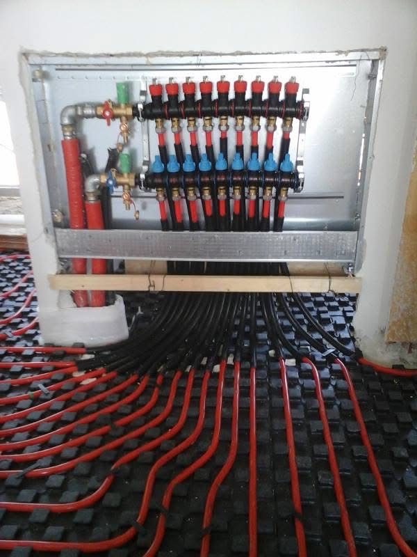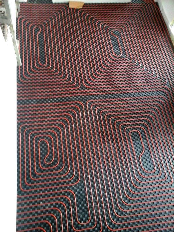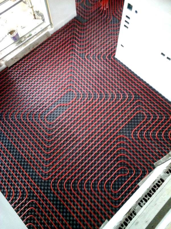 Impianto di riscaldamento a pavimento eseguito con distanza passo 10 e regolazione climatica dal gruppo termico a condensazione.